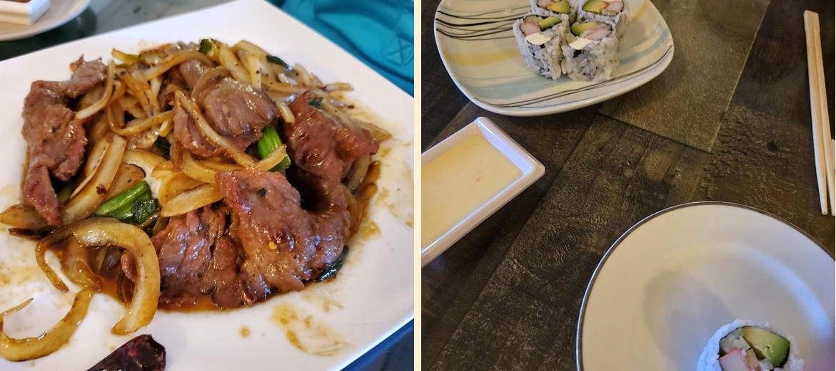 Akina serves a variety of Asian cuisine. You can find sushi, hibachi, Chinese, and Japanese dishes. There are many options to choose from for any meal.